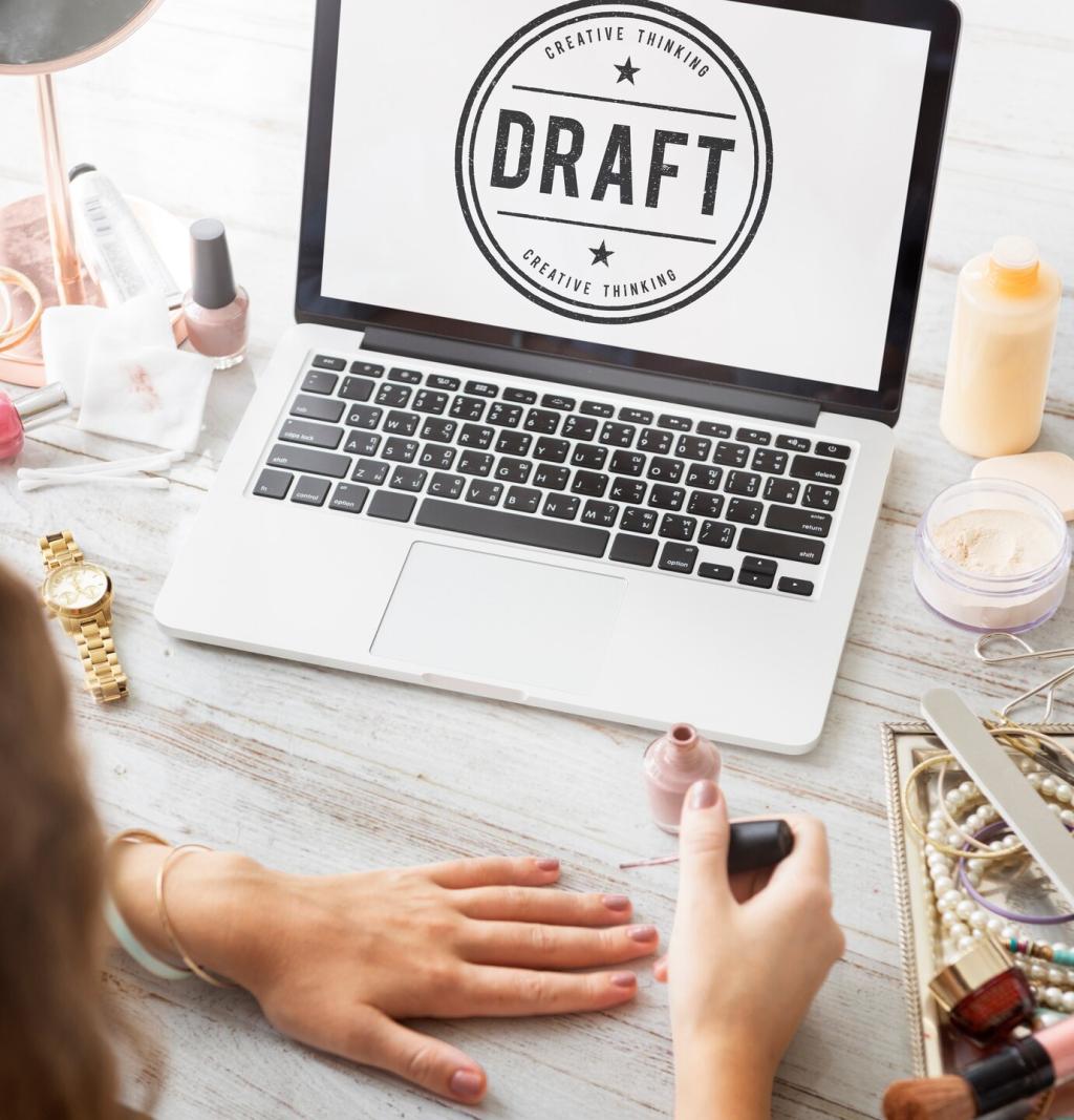 Platziere das Hauptmotiv zunächst auf einer Drittellinie, sichere die Lesbarkeit, und brich die Regel später bewusst mit Zentrierung oder radikaler Negativfläche. Bitte Leser, in den Kommentaren für ihre Lieblingsvariante abzustimmen und erkläre, warum die Entscheidung zur Botschaft des Designs passt.