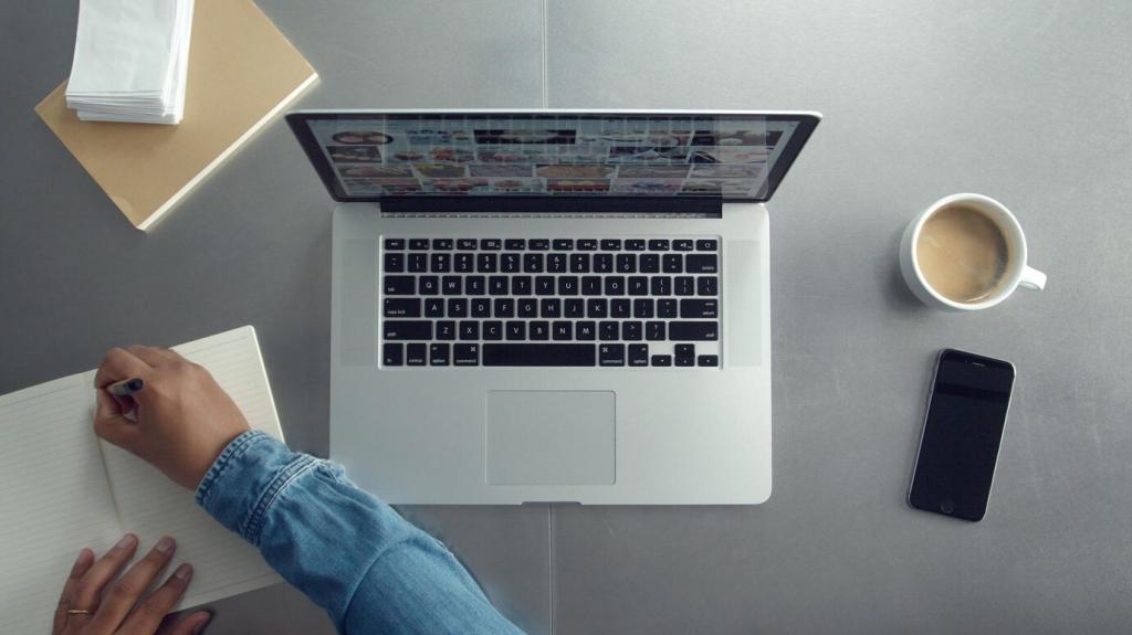 Definiere zwei Primärfarben und eine Akzentfarbe. Halte Hintergründe ruhig, damit Oberflächen wirken. Verweise auf Farbpsychologie, aber teste real: Erstelle A/B‑Posts mit unterschiedlichen Akzenten und bitte Follower, Klick‑ und Speicherverhalten mitzuteilen, um deine Palette gezielt zu schärfen.